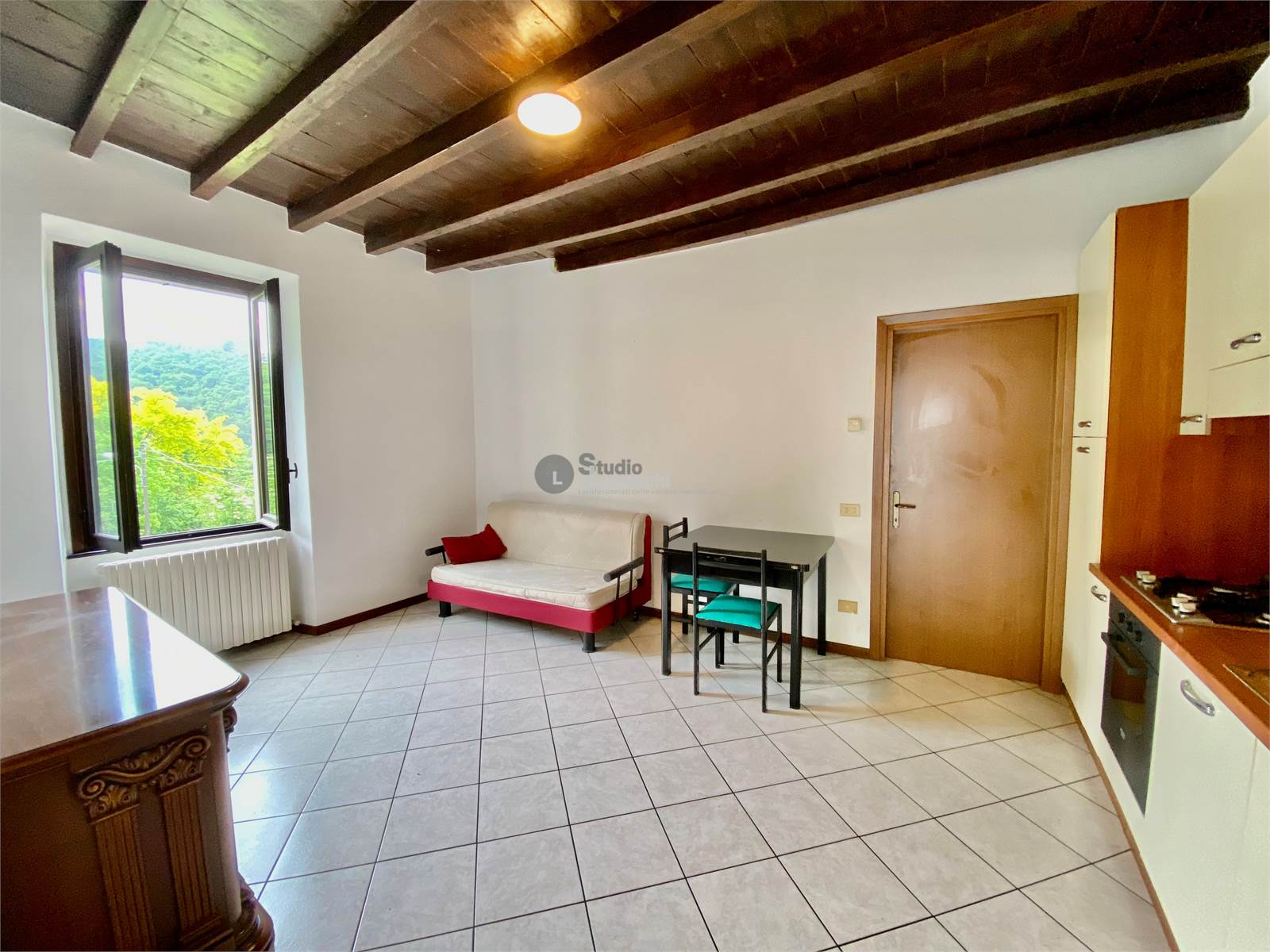 All'interno di un piccolo contesto senza spese condominiali, proponiamo la locazione di un bilocale arredato situato al piano primo. L'abitazione si affaccia su 3 lati, è impreziosita dalla presenza di un terrazzino coperto ed è composta da soggiorno con angolo cottura, disimpegno, camera matrimoniale e bagno finestrato con doccia. Cantina di pertinenza e Posto auto assegnato.