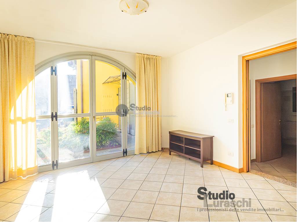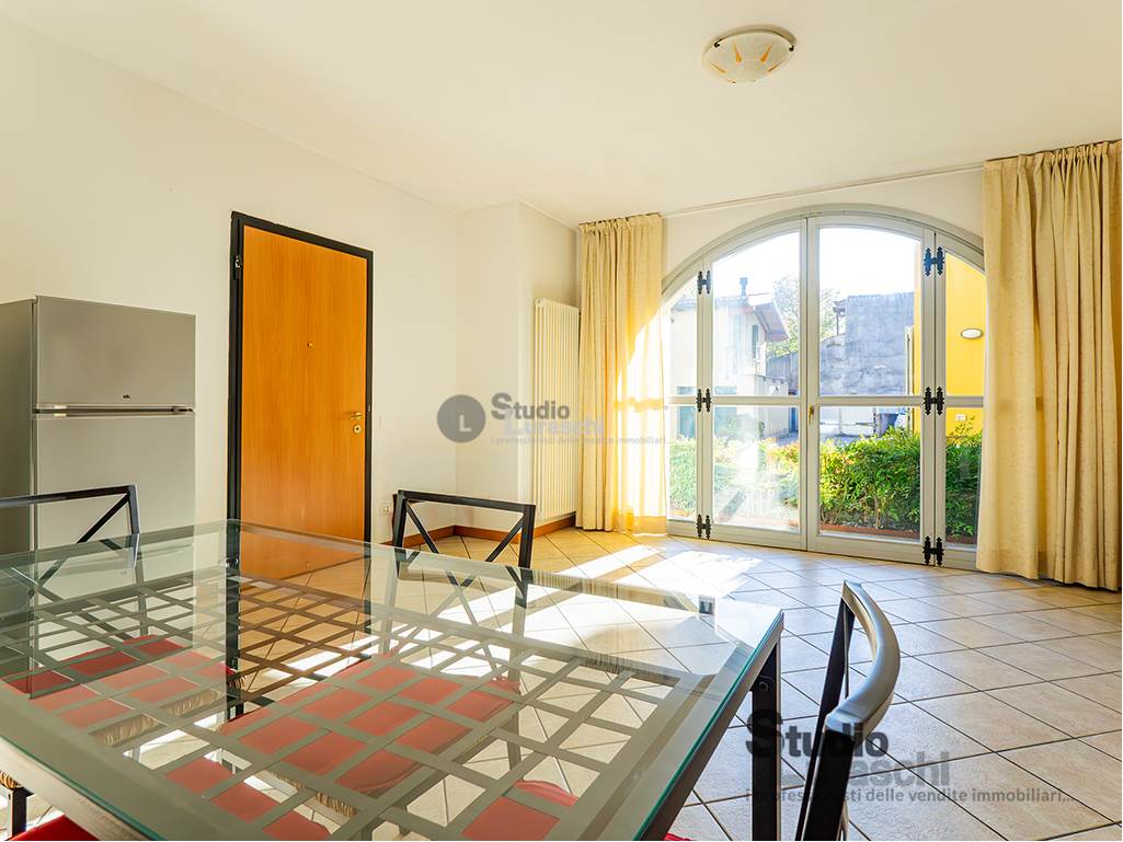 In pieno centro, a pochi passi dalla ciclopedonale fronte lago, proponiamo in esclusiva la vendita di un piacevole appartamento bilocale di ampia metratura sito al piano terra di un affascinante ambito condominiale dotato di corte comune. La soluzione si presenta in buono stato di manutenzione e conservazione, è dotata di riscaldamento autonomo ed è composta da soggiorno con ampie vetrate, cucina abitabile, disimpegno notte, camera matrimoniale con cabina armadio, bagno non finestrato e locale lavanderia/ripostiglio. A completamento della proprietà un'autorimessa singola al piano interrato. Libero da subito.
