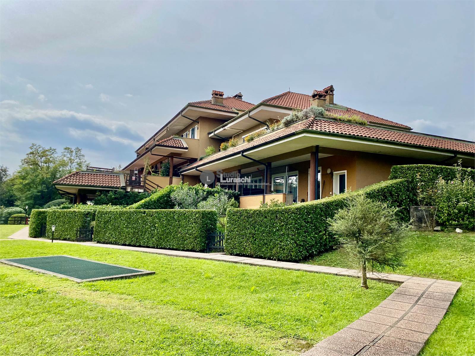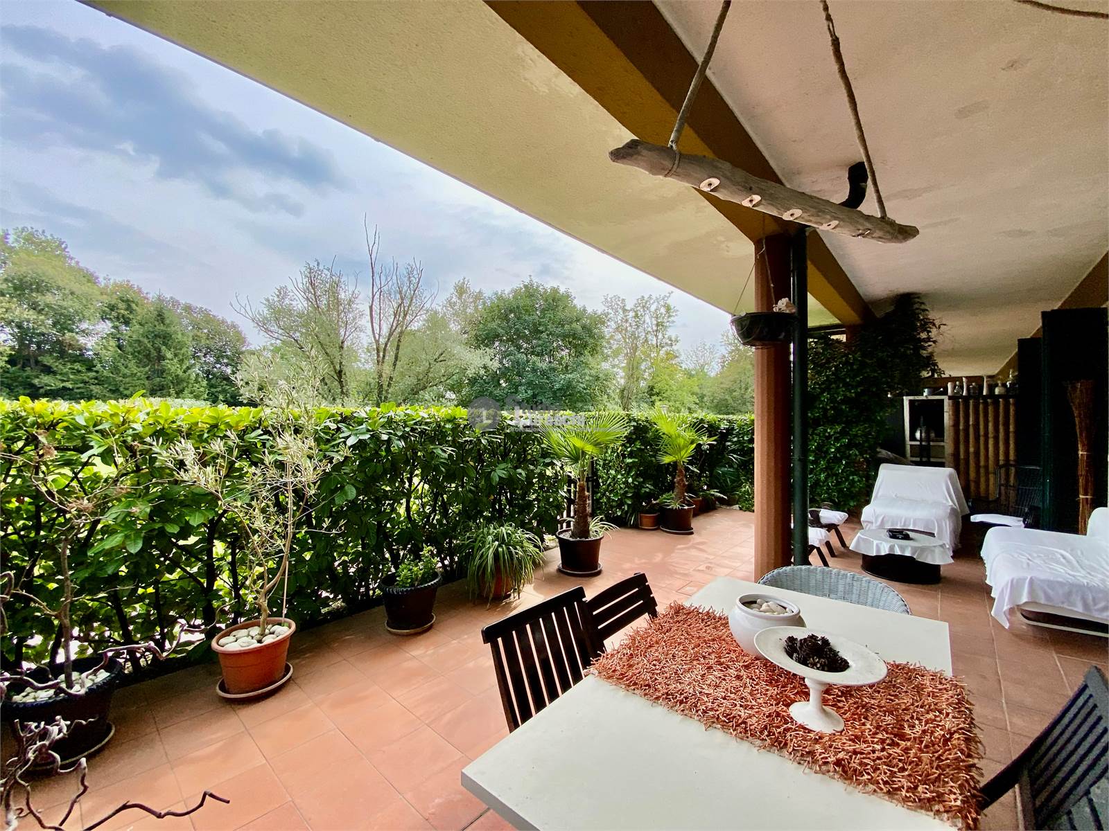 All’interno della piacevole residenza denominata “Lago Turchese”, oasi di pace immersa in un bellissimo parco condominiale con tennis, servizio di portineria/custode e area giochi, a pochi passi dal lungolago di Bosisio Parini, proponiamo la vendita di un appartamento termoautonomo situato al piano terra; la soluzione si presenta in buono stato di conservazione, è dotata di ingresso indipendente ed è composta da ingresso, spaziosa zona giorno con cucina abitabile a vista dotata di camino e area living, disimpegno notte, camera padronale con cabina armadio, camera, doppi servizi non finestrati e studio/cameretta con accesso diretto dalla cucina oltre a bellissimo patio coperto di superficie importante che abbraccia l’abitazione e ne conferisce eleganza e comfort. Possibilità di acquisto di autorimessa singola sita al piano interrato.
