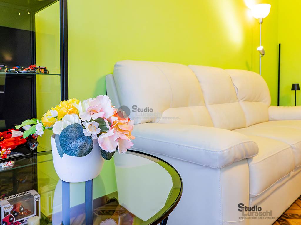 L’appartamento si presenta luminoso e ben distribuito ed è composto da ingresso, soggiorno con accesso a balcone panoramico, cucina abitabile, disimpegno zona notte, due camere matrimoniali, bagno finestrato recentemente ristrutturato e secondo balcone.