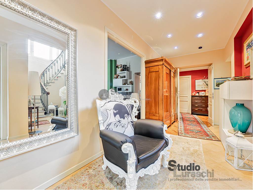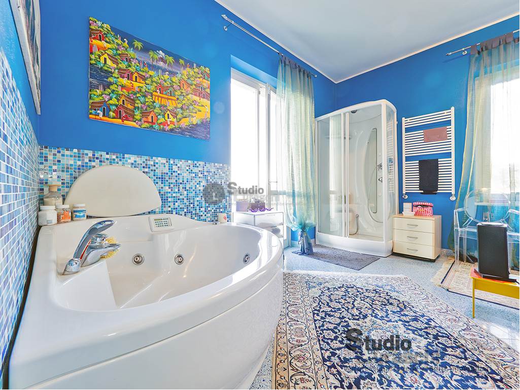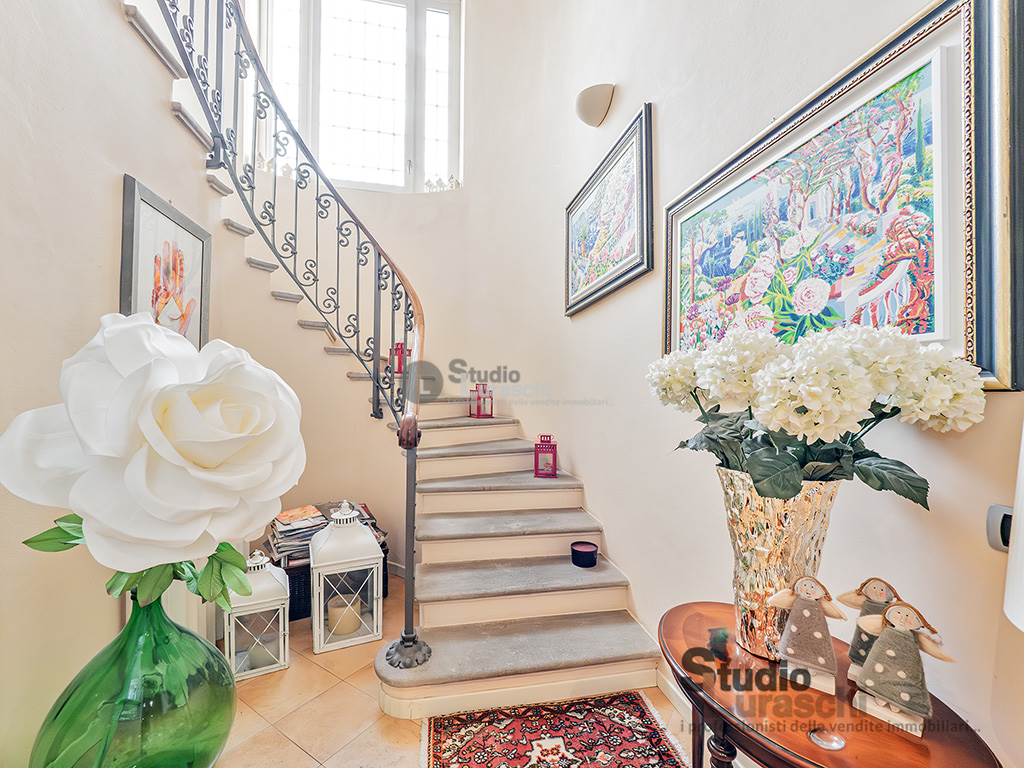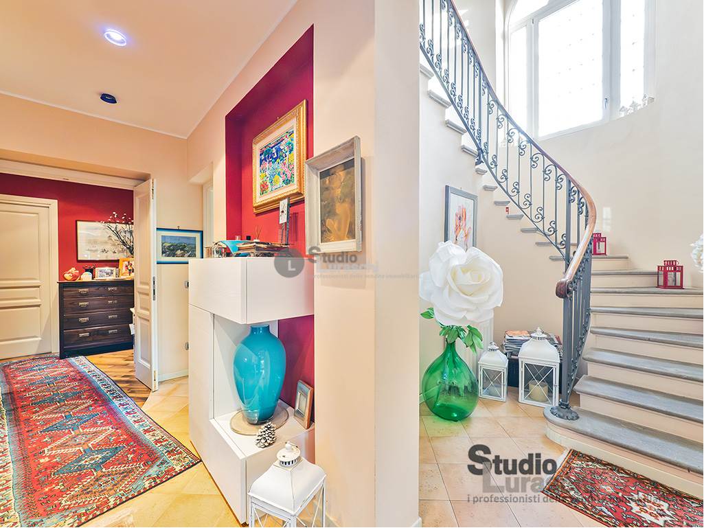 L'accogliente piano terra, accessibile da due ampi porticati, si suddivide in: ingresso, salone doppio con camino, cucina ab., sala pranzo, studio, un ripostiglio, disimpegni e bagno. Il piano superiore, raggiungibile tramite scala interna, ospita la zona notte comprensiva di quattro camere da letto (di cui due con cabina armadio) ciascuna con proprio bagno ed un panoramico terrazzo. Il piano interrato, completamente finestrato, si compone di una cantina, centrale termica, un ripostiglio, una lavanderia, un ampio locale pluriuso/taverna con camino oltre a disimpegno di collegamento all'autorimessa quadrupla. Ulteriori informazioni presso il ns. ufficio.