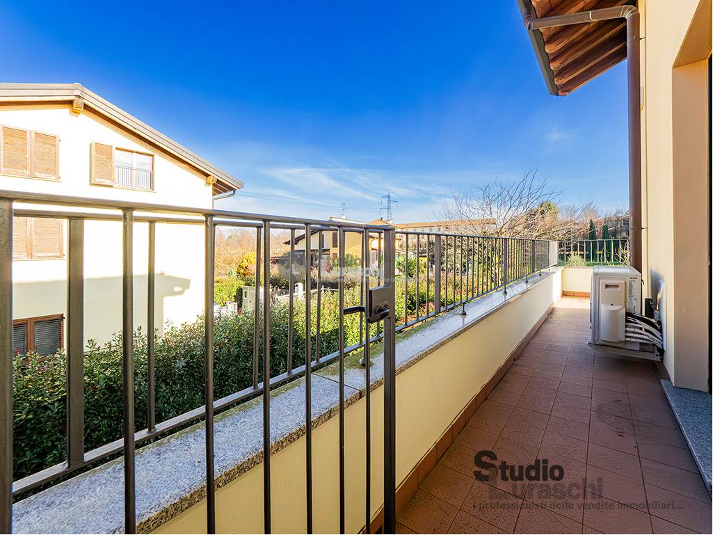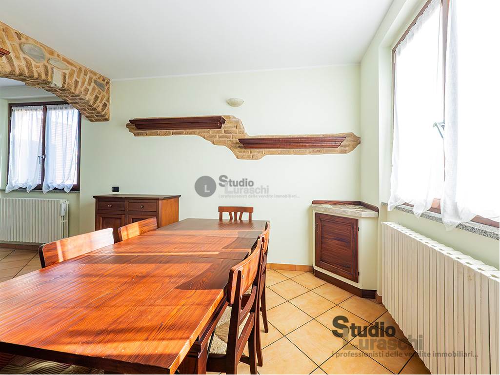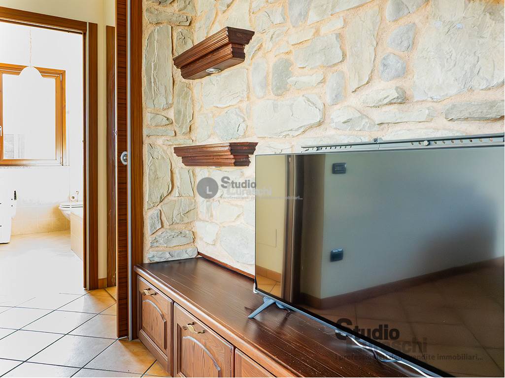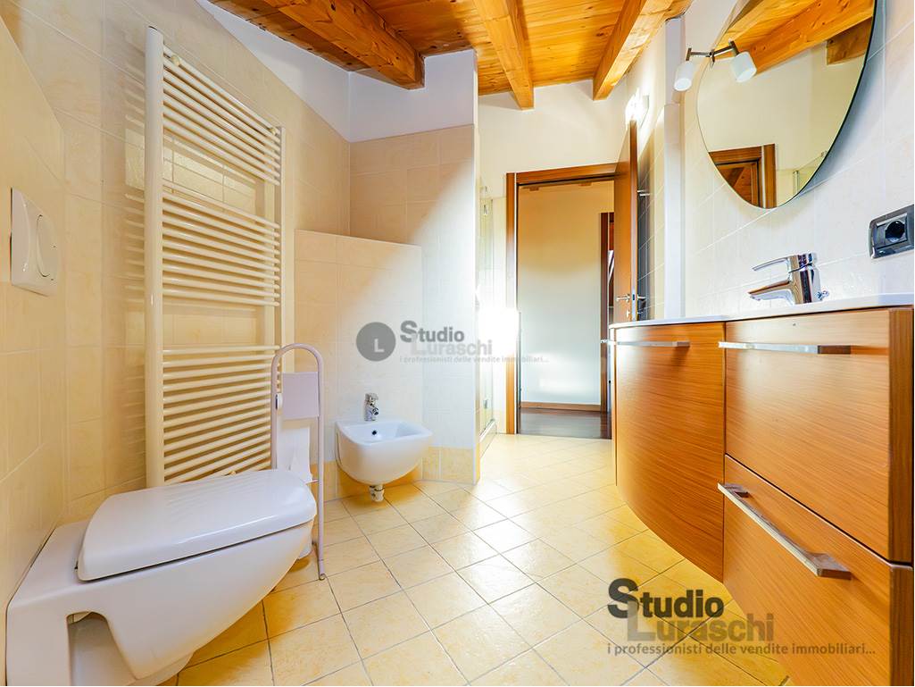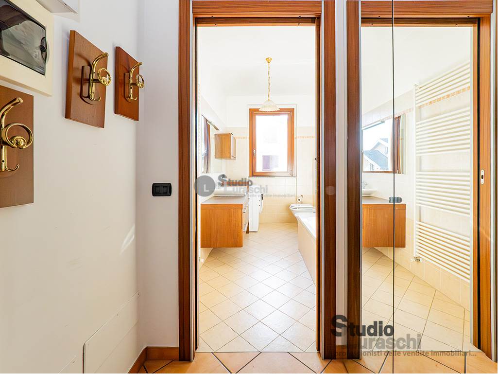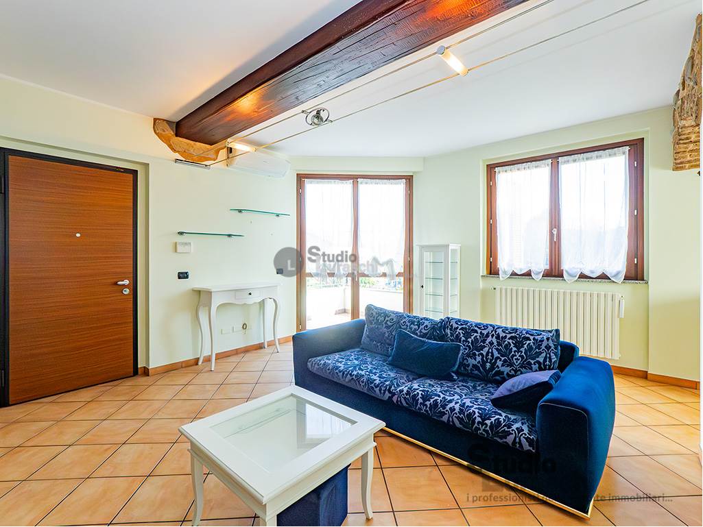 All'interno di un piacevole quartiere residenziale, proponiamo in esclusiva la vendita di un'abitazione sita al piano primo, libera su due lati e ben distribuita. L'appartamento è in buone condizioni, pronto per essere abitato ed è costituito al piano primo da soggiorno con gradevoli dettagli in legno e sasso/mattone, cucina abitabile e bagno finestrato con vasca oltre a piacevole terrazzo che abbraccia su due lati l'unità; al piano secondo mansardato, a cui si accede tramite scala interna a vista, vi sono tre locali accessori attualmente adibiti a zona notte con servizio. Impreziosiscono la proprietà un'autorimessa doppia e una cantina. Impianto di condizionamento presente all'interno dell'abitazione.